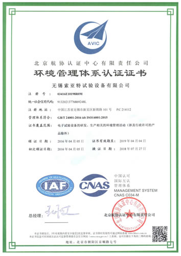 質量管理體系認證證書(GB/T24001-2004)